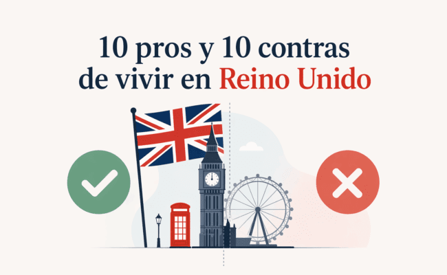 Descubre los 10 pros y 10 contras de vivir en Reino Unido. En el artículo de hoy analizamos las ventajas clave como el NHS, la educación de calidad y las oportunidades laborales junto con las desventajas como el clima, el alto coste de vida y la burocracia para ayudarte a decidir si mudarte al país británico.