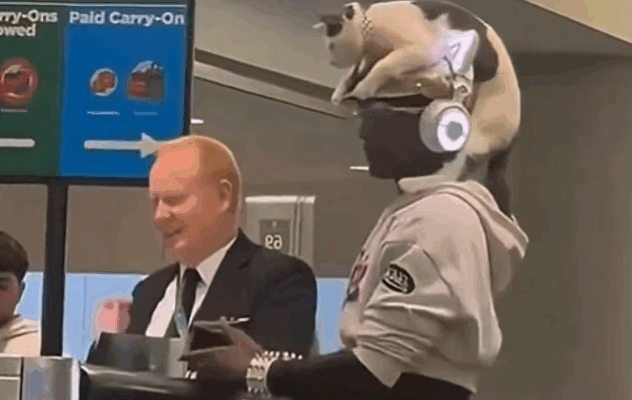 Para muchos, la escena fue tan inusual que resultaba difícil de creer. Ver a una persona utilizando a su mascota como si fuera un “sombrero” convirtió este episodio en uno de los momentos virales más comentados en el ámbito de los viajes recientes.