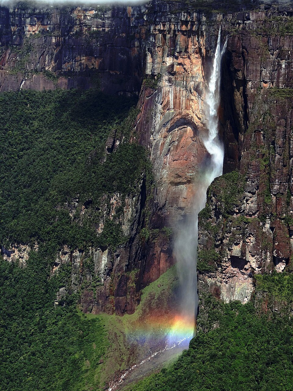 En el corazón de la selva venezolana, en el estado Bolívar, se encuentra el Salto Ángel, conocido como la cascada más alta del mundo y, popularmente, como “la más grande” por su imponente escala. Esta maravilla natural cae desde la cima del Auyán-tepui (una de las emblemáticas mesetas tabulares o tepuyes de la Guayana venezolana) dentro del Parque Nacional Canaima. Con una altura total de 979 metros y una caída libre ininterrumpida de 807 metros, el Salto Ángel triplica la altura del Empire State Building y supera incluso al Burj Khalifa en su descenso vertical. Su nombre indígena en pemón es Kerepakupai Vená, que significa “salto del lugar más profundo”. El agua del río Churún se precipita en una fina niebla que se dispersa con el viento, creando un espectáculo visible desde kilómetros de distancia en medio de un paisaje de acantilados milenarios y selva tropical.
